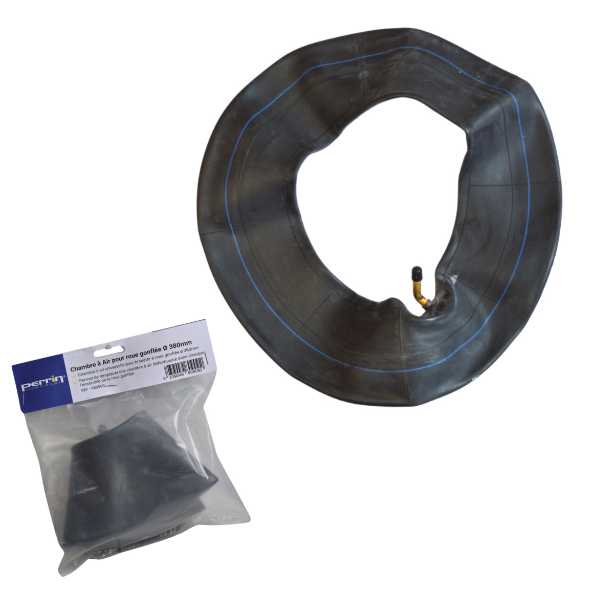 Cette chambre à air pour roue Ø 380 mm est une pièce détachée essentielle pour garantir la performance et la durabilité de vos outils ou équipements à roue gonflée.